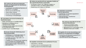 Wir begleiten Sie auch bei allen Fragen rund um die Qualität. Dies kann der Aufbau einer Bewilligungs- und Aufsichtsbehörde, die Entwicklung oder Anpassung von Qualitätskriterien sowie die Einführung von Qualitätsdialogen mit verschiedenen Stakeholdern sein.