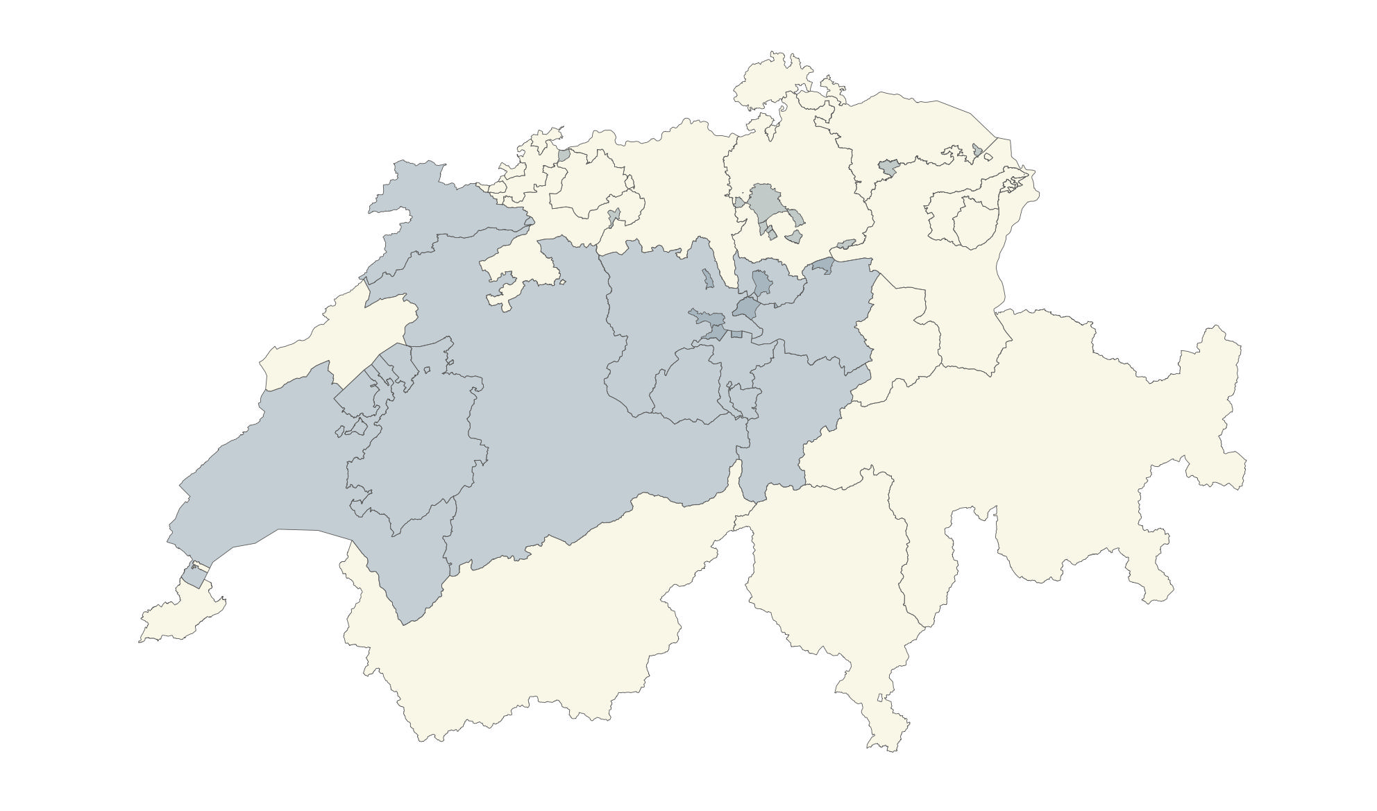 Bisher hat Interface die folgenden Kantone, Gemeinden und Städte bei der Konzipierung und Umsetzung von familien- und schulergänzender Kinderbetreuung unterstützt (grau eingefärbt auf der Karte).
